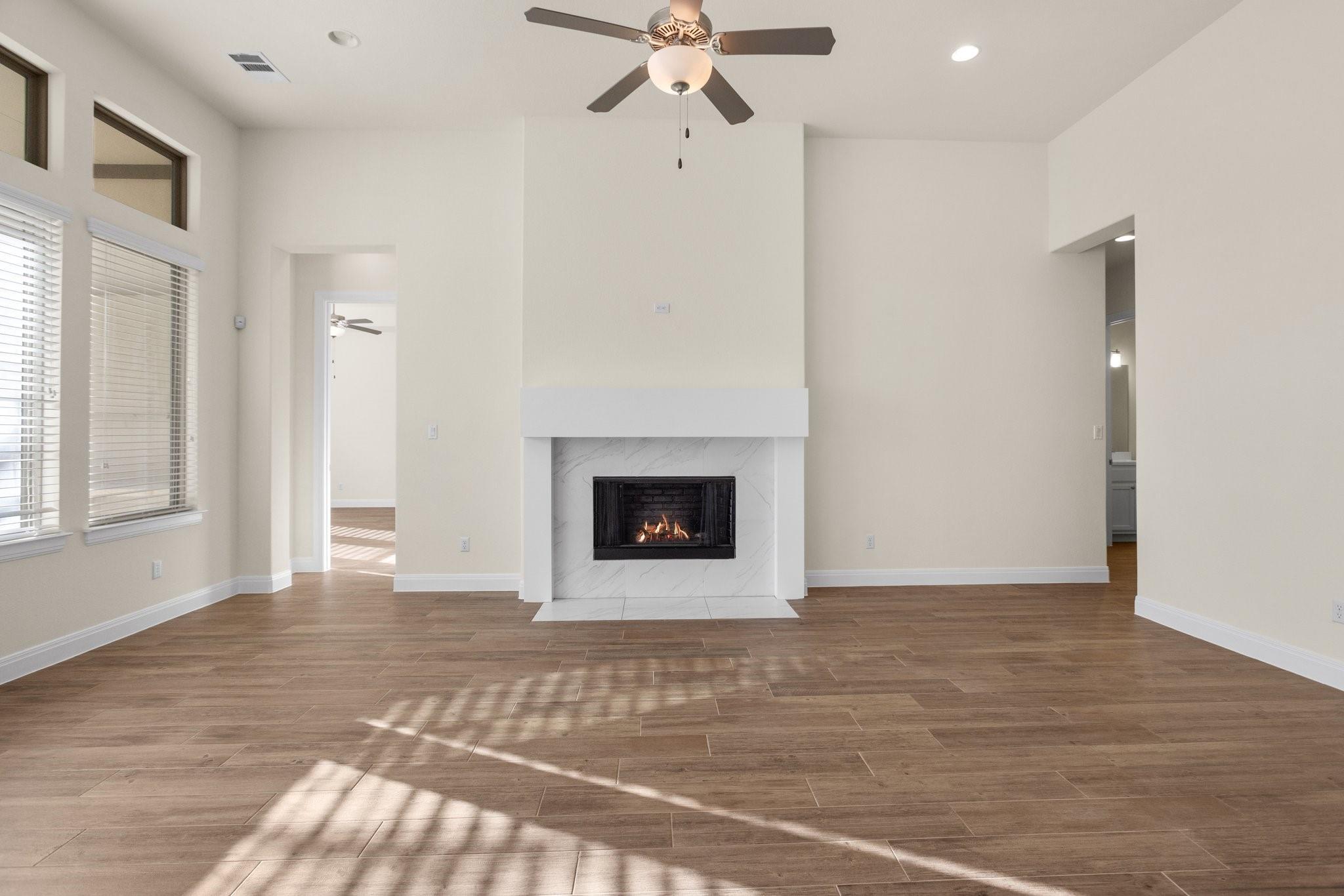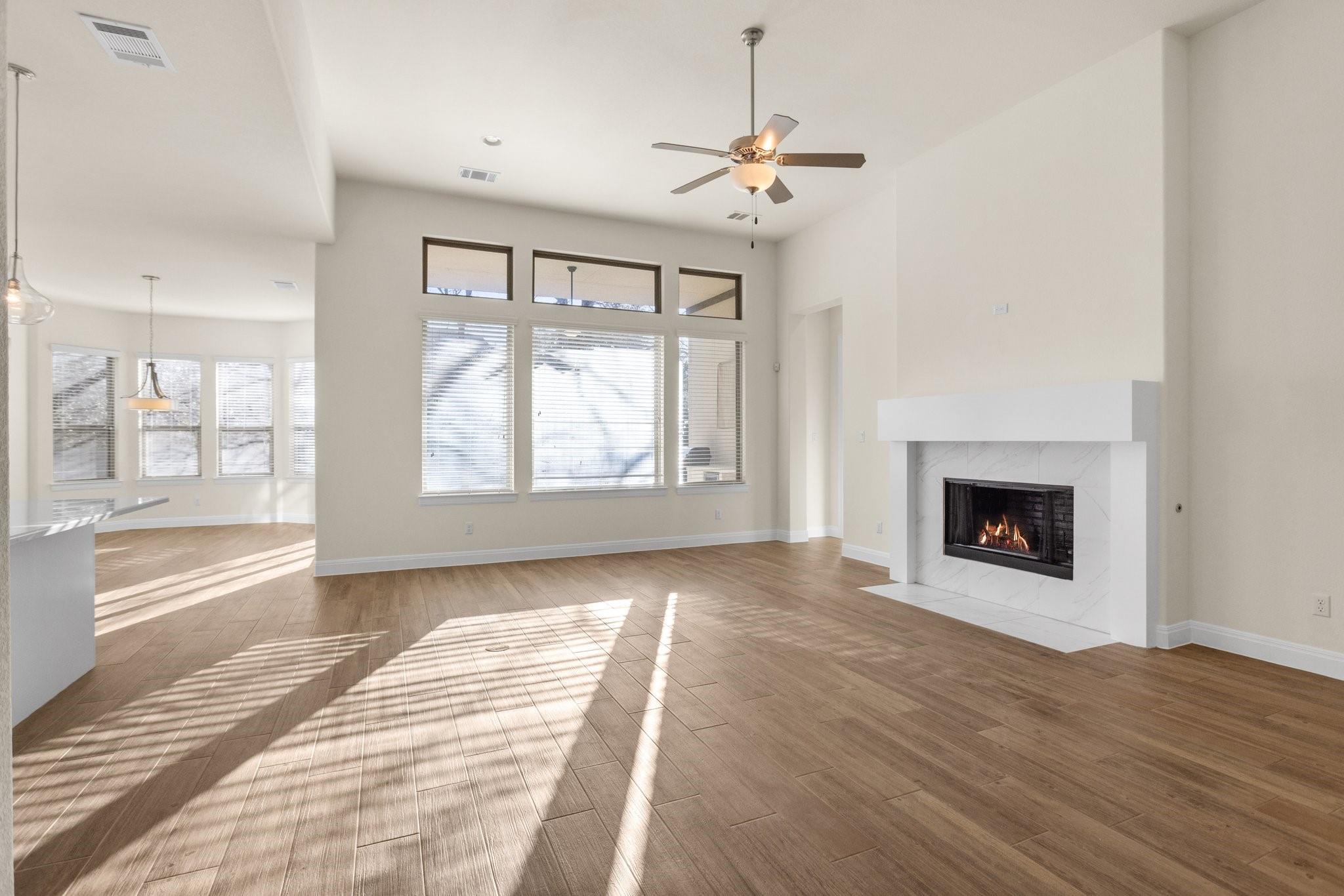 This beautifully maintained, one-owner home is nestled on one of the largest lots in the desirable Wolf Ranch neighborhood, offering both privacy and an expansive outdoor space. Freshly painted throughout, this home exudes a clean, modern feel, with a brand-new roof installed in 2024 for added peace of mind. Inside, youll find an open, inviting floor plan featuring gorgeous wood-look tile throughout the first-floor main areas and in the spacious primary bedroom. The kitchen is open and bright with an attached oversized dining area and equipped with a fridge that conveys with the property, making this home move-in ready. The backyard is a true oasis, ideal for outdoor living and entertaining. With an enclosed turf area, it’s the perfect space for pets or children to play. Relax beneath the string lights that adorn the backyard, all while enjoying privacy from the private property and greenbelt behind. Large trees add shade and charm to the yard, enhancing its natural beauty. Located in the heart of Wolf Ranch, this home is within close proximity to the community club house, pool and only one mile from shops, dining, making it the perfect place for families to settle and grow. Don’t miss the opportunity to own this incredible property!