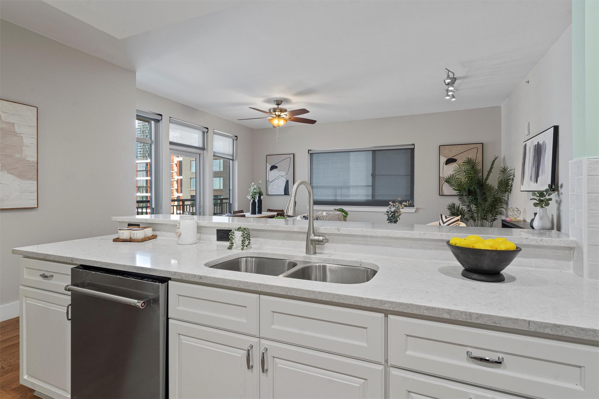 Welcome to your dream urban retreat at The Shore Condominiums in downtown Austin! Perched on the 9th floor, this spectacular corner unit boasts 2 bedrooms, 2 bathrooms, and a wrap-around balcony offering stunning views of the pool. Completely remodeled in 2023, the kitchen shines with new countertops, custom cabinets, and top-of-the-line KitchenAid appliances. Situated in the vibrant Rainey Street District and close to the Lady Bird Lake, this home offers an unbeatable location with private entry to the adjacent Hotel Van Zandt’s exclusive amenities and café. The Shore Condominiums elevate your living experience with exceptional building amenities such as a 24-hour concierge, a sparkling pool with a poolside gazebo, a state-of-the-art fitness center, direct access to the Lady Bird Lake hike and bike trail, a conference room, laundry pickup services, a fire pit, and an outdoor lounge. Step outside and immerse yourself in the lively Austin dining scene with popular spots like Lustre Pearl, Revue, Geraldine’s, Emmer & Rye, Lucille, and Ciclo just steps away. Plus, two reserved parking spaces ensure that you always have a spot waiting for you. Dont miss this unique opportunity to lease an extraordinary residence that offers a perfect blend of sophistication, convenience, and excitement.