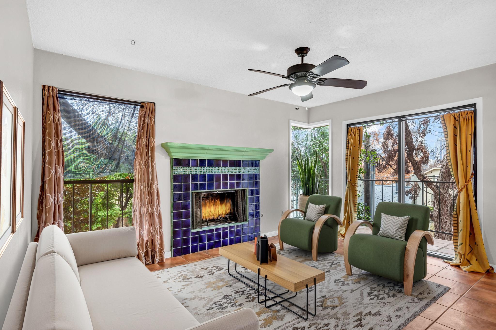 Charming condo, amazing location and with excellent walkability to Downtown & UT campus. Surrounded by historic homes with Downtown Skyline views. Nestled between the grandeur of the State Capitol and the UT campus, this charming condo provides a peaceful retreat with its cozy Spanish tile fireplace and serene patio boasting treetop views that instill tranquility. Inside, youll find easy-to-maintain tile flooring throughout, creating a clean and inviting space. The sliding glass doors fill the living room with natural light, enhancing the homes inviting ambiance. With its prime location, you are just steps away from the Harry Ransom Center, premier UT facilities, and the eclectic mix of restaurants and shops along MLK. A short walk to Pease Park unveils trails and green spaces for your enjoyment. This condo is an exceptional opportunity to create your own haven in the heart of Austin. Plus, one parking space is included for your convenience. Embrace the allure of urban living at 806 W 17th Street.